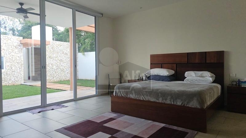 Casa en venta en privada zona noreste en Mérida, Yucatán. Sala comedor corridos a doble altura con vista al jardín y piscina, cocina amplia estilo americana con meseta de granito, barra desayunadora, campana y estufa de gas incluidos, alacena de muy buen tamaño, baño de visitas, terraza familiar techada amplia con bar; estudio para TV o de cómputo, recámara principal muy amplia con un total de 29 m2 (5.65 x 5.20) con cortina motorizada, closet vestidor bien iluminado con luz natural, baño espacioso con doble lavabo; estudio muy amplio con baño con posibilidad de ser utilizado como recamara adicional, piscina de 14 metros de largo por 4 de ancho, estacionamiento techado para dos autos, área de servicio con baño incluyendo tendedero. PLANTA ALTA: habitación con closet vestidor, baño amplio y aire acondicionado. INSTALACIONES: piscina amplia con filtros y luces de colores, acabado chukúm, cuarto de máquinas, bodega, instalación para lavadora y secadora, calentador de agua, suavizador de agua, sistema de ósmosis inversa, cisterna, 2 tinacos, 12 páneles solares, 5 ventiladores, vidrios anti reflejantes, presurizador de agua, sistema de riego, biodigestor, jardines con sistema automático de riego. Puertas de madera en cuartos, baños y alacena.